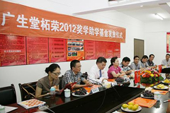 2012年8月22日,“廣生堂柘榮獎學(xué)助學(xué)基金”在福建廣生堂藥業(yè)股份有限公司柘榮生產(chǎn)基地順利召開。本次獎助學(xué)活動資助的對象是柘榮一中2012屆考上大學(xué)的8名優(yōu)秀學(xué)生以及19名家庭貧困的品學(xué)兼優(yōu)的學(xué)生。